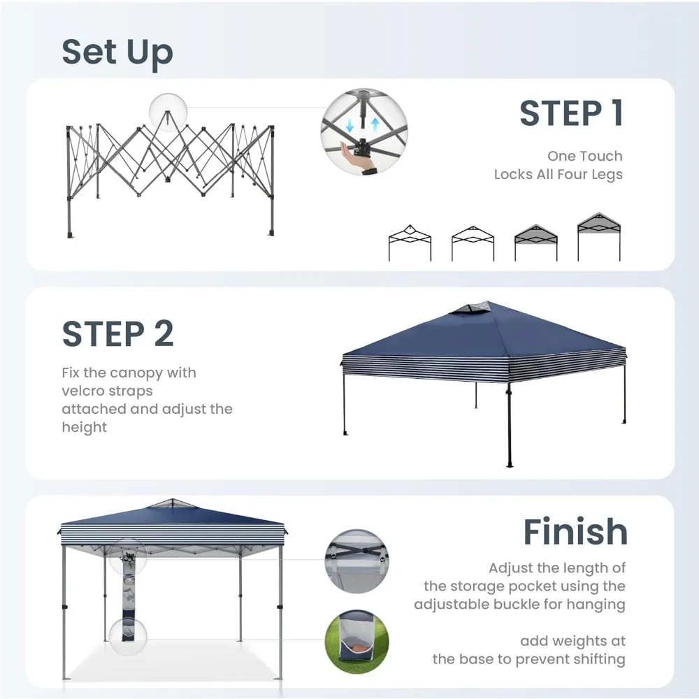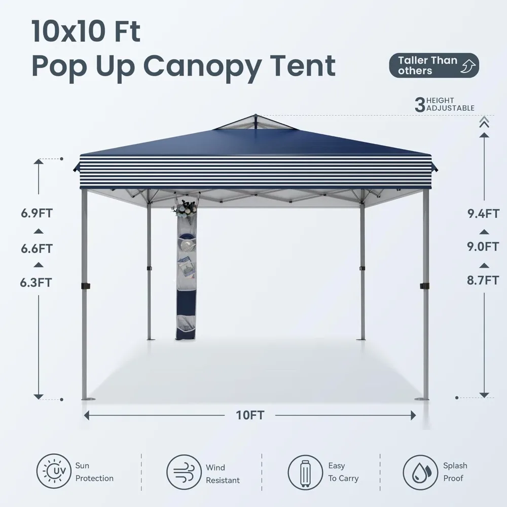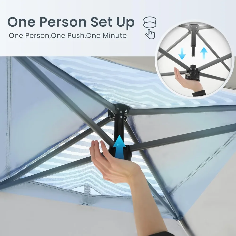 Set up shade in seconds with this 10×10 FT instant pop up canopy tent. Featuring a one-push design, it opens effortlessly to provide reliable shelter for outdoor events, beach trips, picnics, or markets. The vented roof enhances airflow, keeping you cool and comfortable under the sun.