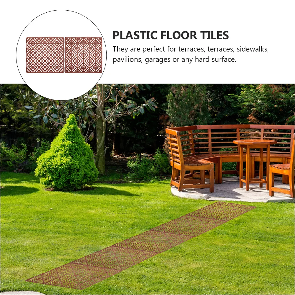 Upgrade your terrace, garden, or outdoor pavement with this 2-piece set of non-slip garden floor mats. Crafted from durable, waterproof plastic, these splicing tiles resist moisture and provide safe, stable footing in wet conditions. The interlocking design allows for quick, tool-free assembly, while the drainage-patterned surface ensures water flows through efficiently, keeping surfaces dry and slip-resistant. Ideal for patios, walkways, or yards, these modular mats combine practicality, durability, and ease of maintenance with a stylish, functional design that enhances any outdoor space.
