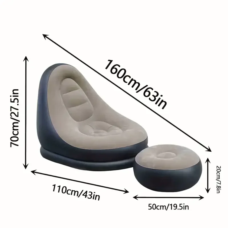 Relax anywhere with this 2-piece inflatable lazy sofa recliner set, featuring a foldable design and matching footrest for ultimate comfort. Ideal for indoor and outdoor use, each chair inflates quickly into a cozy recliner and deflates for compact storage. Whether you’re lounging at home, camping, or taking a lunch break, this portable air mattress-style chair offers versatile comfort on demand.