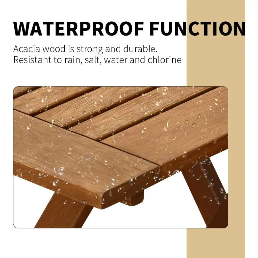 Bring warmth and natural beauty to your outdoor space with this 3-piece acacia wood folding patio bistro set. Crafted from solid acacia wood, it includes two folding chairs and a square table, offering both durability and timeless charm. Perfect for poolside lounging, garden corners, balconies, or beach retreats, this set creates a cozy spot for morning coffee, afternoon tea, or evening conversations under the open sky. The folding design makes it easy to store and transport, while the rich wood grain adds a rustic elegance that blends seamlessly with any décor. More than furniture, it becomes a restorative accent—an invitation to pause, breathe, and enjoy the gentle rhythm of outdoor living. Compact yet sturdy, this bistro set is ideal for small spaces, embodying harmony between practicality and soulful design. Whether placed by the pool, on a sunny balcony, or in a quiet garden nook, it is not simply a table and chairs—it is a vessel of renewal, a symbol of balance, and a daily reminder that serenity can be cultivated in the simplest of moments.