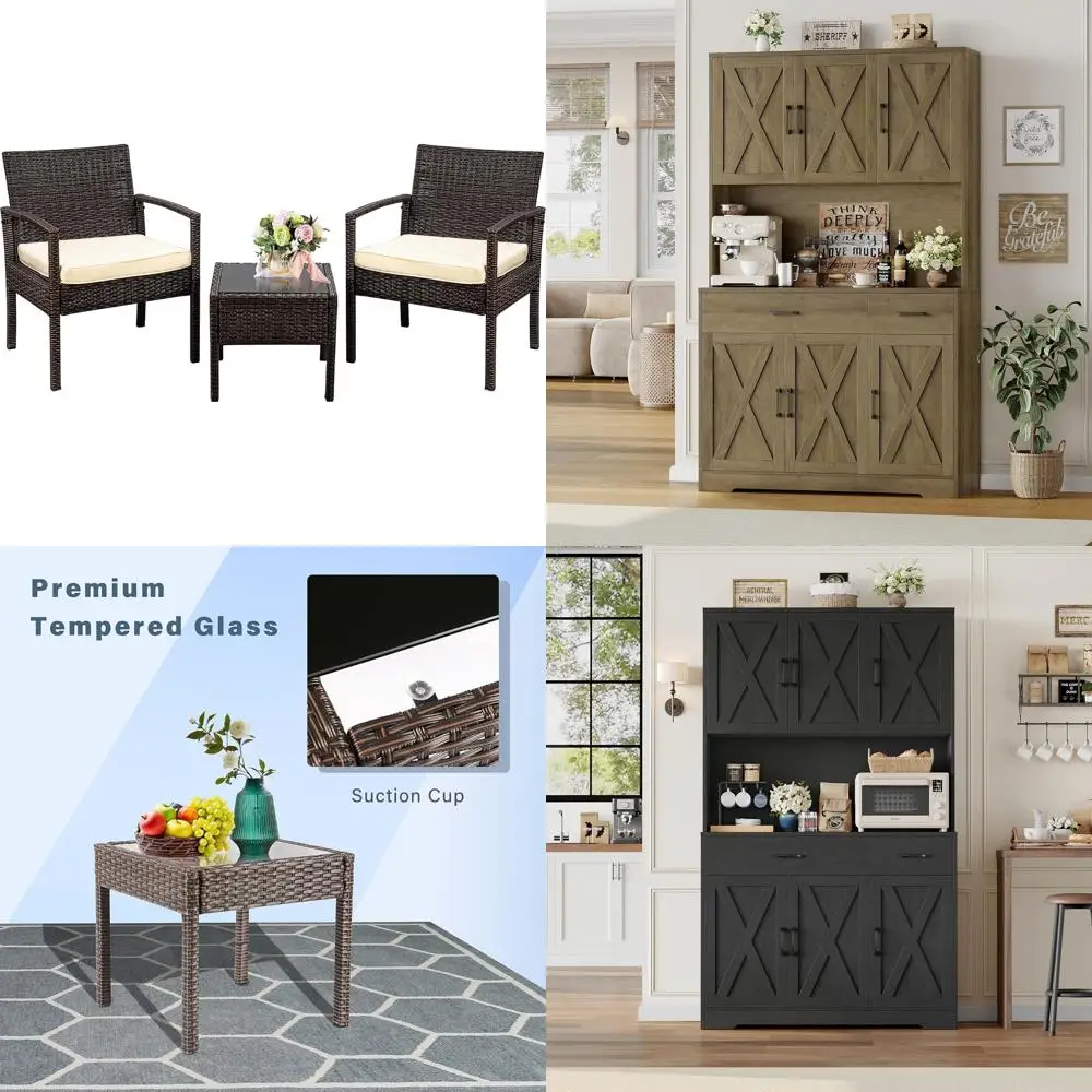Create a serene outdoor retreat with this 3-piece rattan patio furniture set, thoughtfully designed to blend comfort, style, and restorative tranquility. Featuring cushioned wicker chairs and a coordinating coffee table, it offers a cozy setting for conversation, relaxation, or quiet moments of reflection in your backyard. The elegant rattan weave and plush seating provide a harmonious balance of texture and softness, encouraging leisurely enjoyment of fresh air and natural surroundings. Perfect for gardens, patios, or balcony spaces, this set transforms any outdoor area into a soulful sanctuary where relaxation and connection with nature naturally flourish. Durable and weather-resistant, it ensures long-lasting beauty while fostering a peaceful, inviting environment.