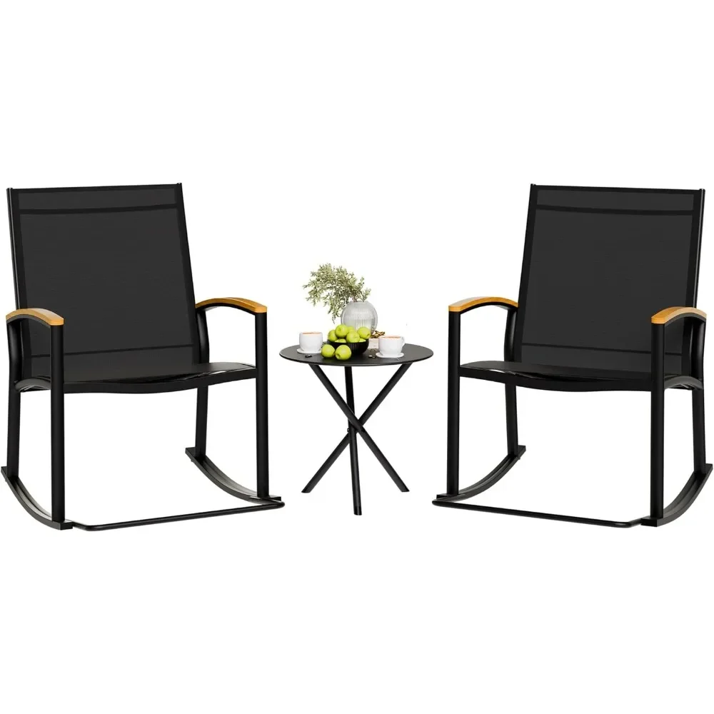 3-Piece Outdoor Rocking Bistro Set – Textilene Patio Chairs & Table
