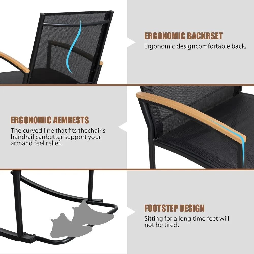 Add charm and comfort to your outdoor space with this 3-Piece Rocking Bistro Set, perfect for front porches, patios, balconies, or gardens. The set includes two ergonomic rocking chairs made with breathable, weather-resistant Textilene fabric and a matching side table for drinks or décor. Designed for relaxed conversation and gentle motion, this compact set is ideal for small spaces and cozy gatherings. Durable construction ensures long-lasting use, while the sleek design complements any outdoor aesthetic.