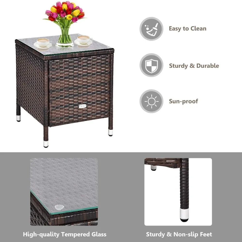 Designed with relaxation in mind, each chair features soft, removable cushions that provide plush comfort and easy maintenance. The glass-top coffee table offers a convenient surface for drinks, snacks, or décor, enhancing both function and style. Whether you’re hosting guests or unwinding after a long day, this rattan furniture set transforms any outdoor area into a cozy, modern retreat you’ll love year-round.