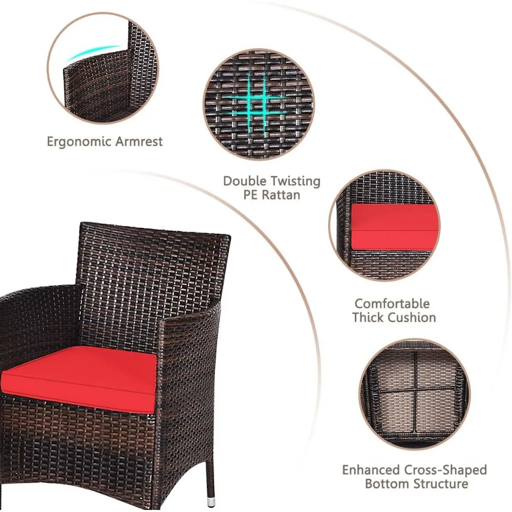 Bring comfort and style to your outdoor living space with this 3-Piece Outdoor Rattan Patio Furniture Set. Complete with two cushioned chairs and a matching coffee table, this set creates an inviting space for morning coffee, evening drinks, or casual conversation. The handwoven rattan design adds a touch of natural elegance while offering durability and resistance to the elements, making it perfect for patios, balconies, porches, or garden corners.