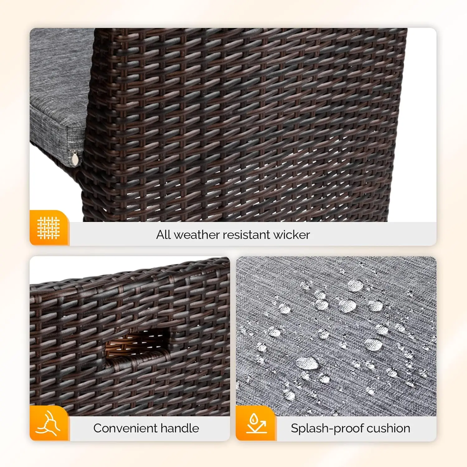Crafted with durable, weather-resistant wicker and a sturdy frame, this set combines elegance with practicality. The compact design makes it easy to fit into tight areas without sacrificing comfort or style. Ideal for enhancing your outdoor living space with a touch of relaxed sophistication.