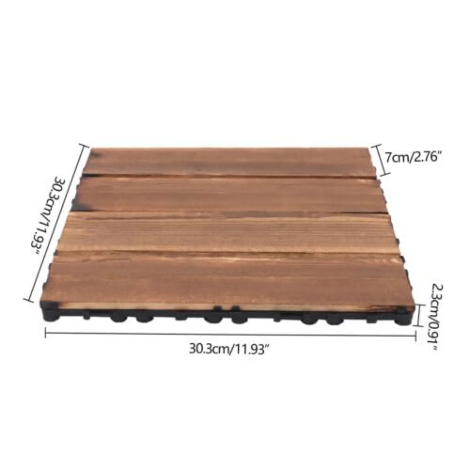 Enhance your indoor or outdoor space with this 36-piece set of 12″x12″ hardwood interlocking patio deck tiles, designed for long-lasting beauty, stability, and all-weather performance. Crafted from durable, richly textured wood, each tile is treated to resist moisture, fading, and daily wear while maintaining a warm, natural finish. The interlocking snap system allows quick, tool-free installation over concrete, balconies, terraces, or garden pathways, making it an ideal DIY flooring upgrade. A raised and ventilated base promotes efficient drainage and slip resistance, keeping surfaces dry, safe, and comfortable year-round. Whether used to refresh a patio seating area or add elegance to an entryway, these modular tiles deliver a polished, timeless look with minimal maintenance and maximum versatility.