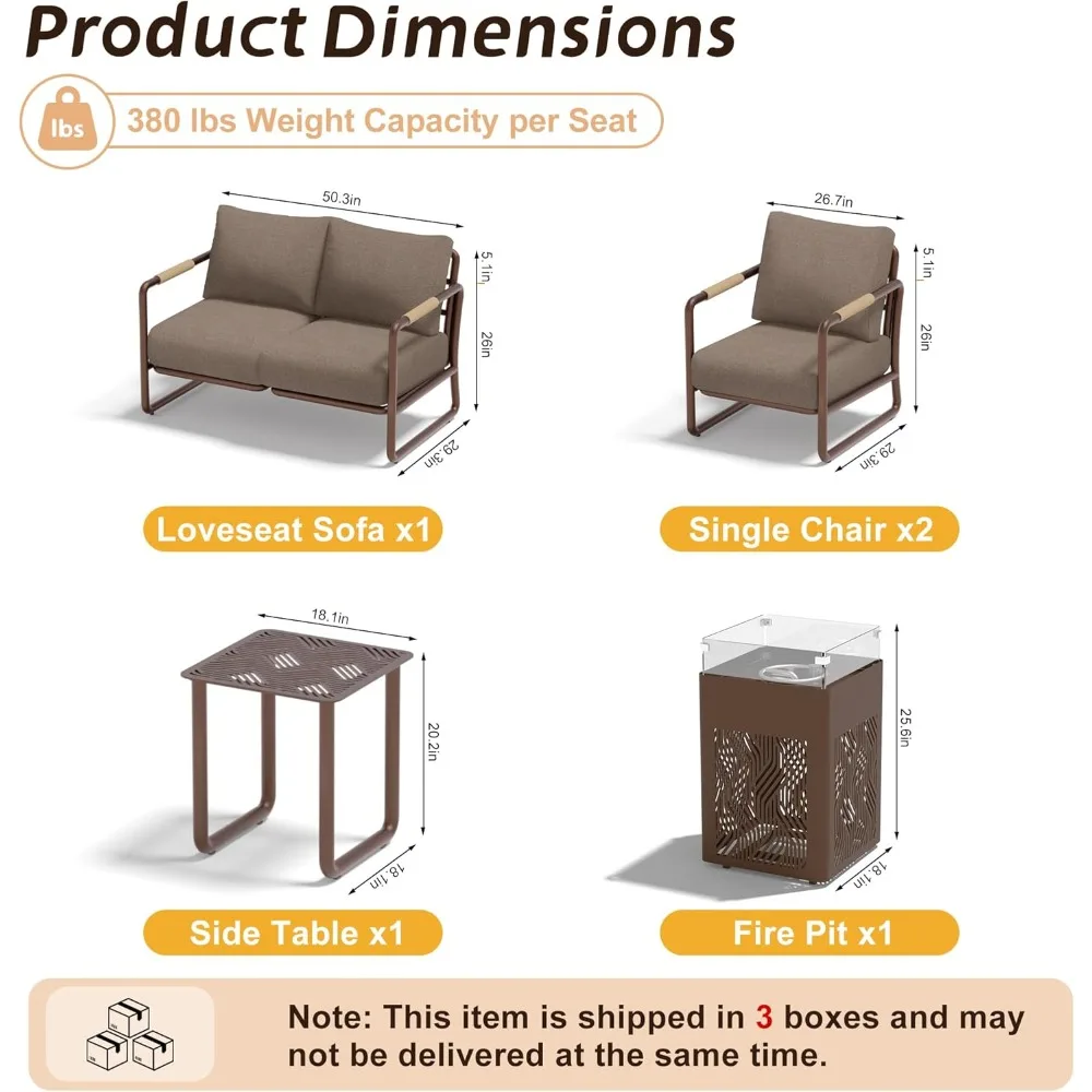 Each seat is designed for comfort with spacious seating and supportive cushions that encourage hours of relaxation. The sturdy aluminum frame resists rust and wear, offering lasting durability with minimal maintenance. Whether you’re hosting guests for a lively evening around the fire or enjoying a quiet night under the stars, this 4-seat patio set delivers the perfect blend of warmth, sophistication, and comfort for your outdoor living space.