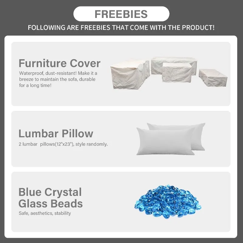 Transform your outdoor space into a serene retreat with this 45” light grey 6-piece patio set, featuring a 60,000 BTU propane fire pit table. Designed for comfort and style, it offers a complete seating arrangement for family gatherings, evening relaxation, or entertaining guests. The fire pit table provides warmth and ambiance, creating a restorative and inviting atmosphere for outdoor living. Crafted with durable materials and a modern aesthetic, this patio set blends functionality with elegance, turning your backyard, patio, or deck into a harmonious haven for relaxation and social connection.