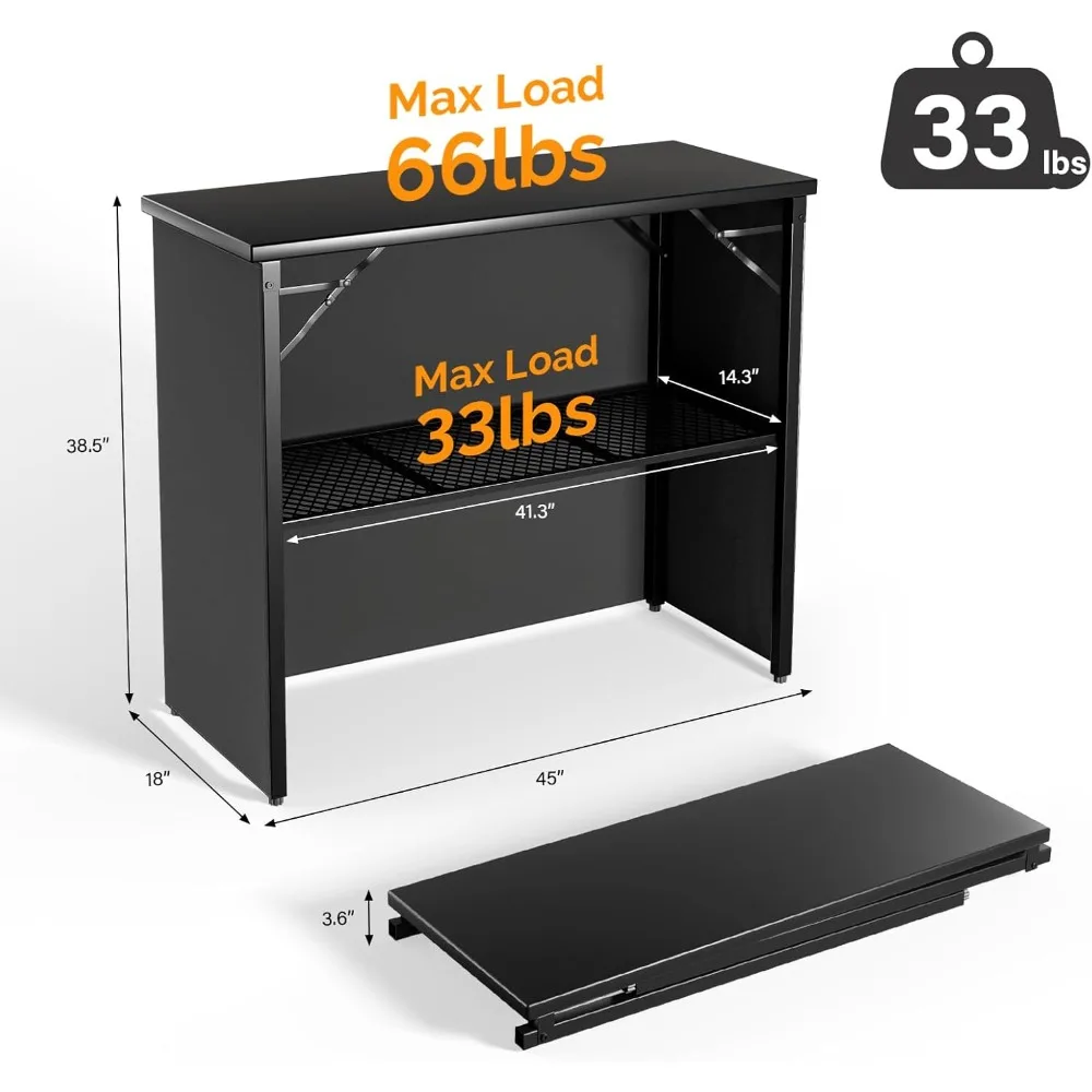 Elevate your events with this 45” commercial portable bar table, thoughtfully designed to blend functionality, mobility, and effortless style. Ideal for outdoor gatherings, indoor parties, or pop-up bar setups, it provides a sleek surface for serving drinks while keeping essentials organized. Its lightweight yet sturdy design ensures easy transport and quick setup, transforming any space into a welcoming and harmonious entertaining area. Perfect for professional bartending or casual social occasions, this mobile bar table creates a serene and practical hub for connection, celebration, and mindful enjoyment, turning every gathering into a seamless and stylish experience.