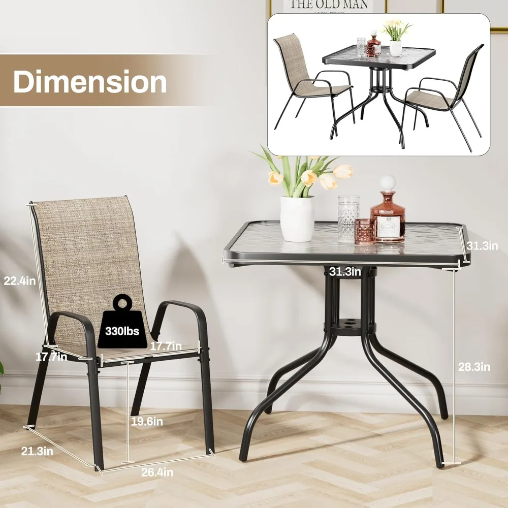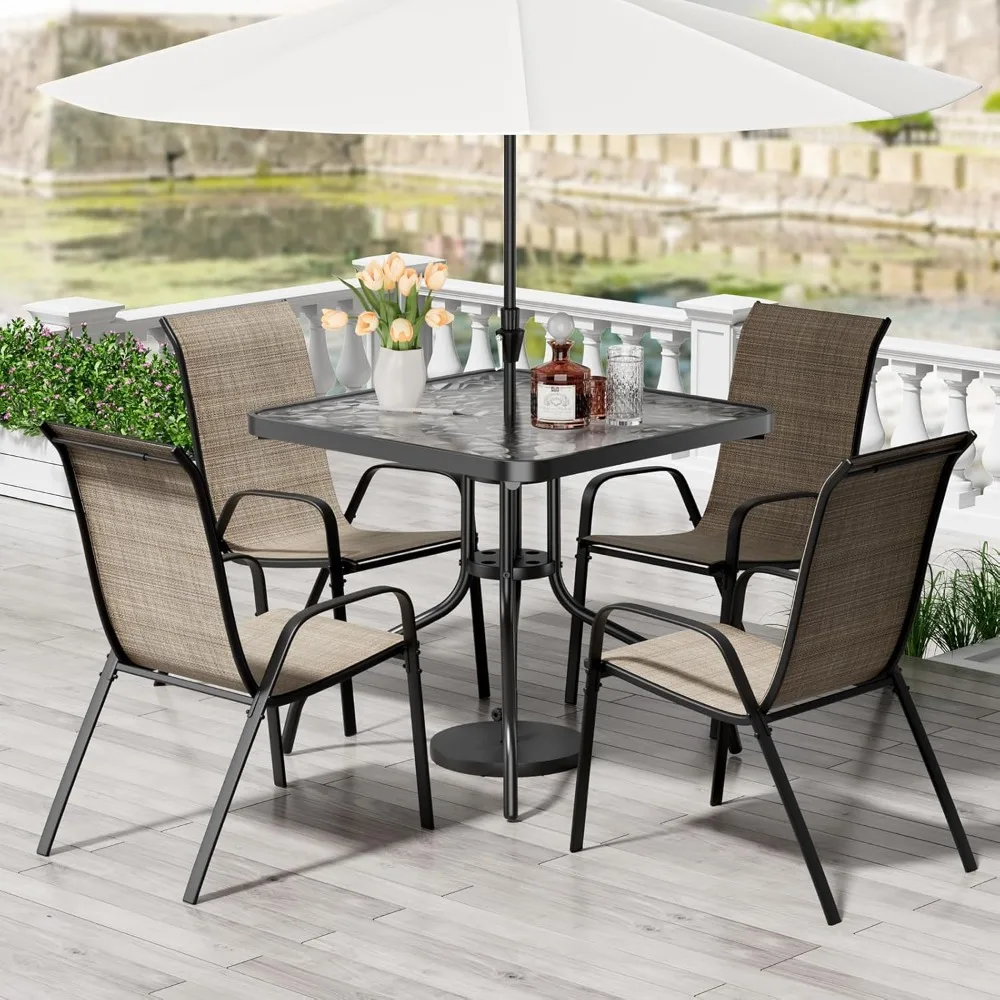 This 5-piece patio dining set offers a stylish and durable solution for outdoor meals, gatherings, and everyday relaxation. Designed for all-weather use, it includes a sturdy dining table and four matching chairs made from long-lasting, fade-resistant materials that withstand sun, rain, and daily wear. Ideal for patios, decks, gardens, or poolside spaces, the set provides comfortable seating and a spacious tabletop for family dinners, coffee breaks, or entertaining guests. With a modern design that blends seamlessly into any outdoor setting, this dining set brings both function and elegance to your outdoor living area.