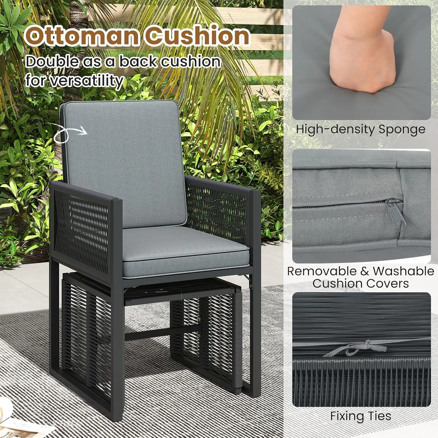 Crafted from durable, weather-resistant PE rattan, this space-saving furniture set is perfect for patios, balconies, gardens, or poolside areas. The comfortable cushions add a touch of luxury, while the modern woven design enhances any outdoor décor. Ideal for small spaces or stylish entertaining, it blends functionality with timeless appeal.