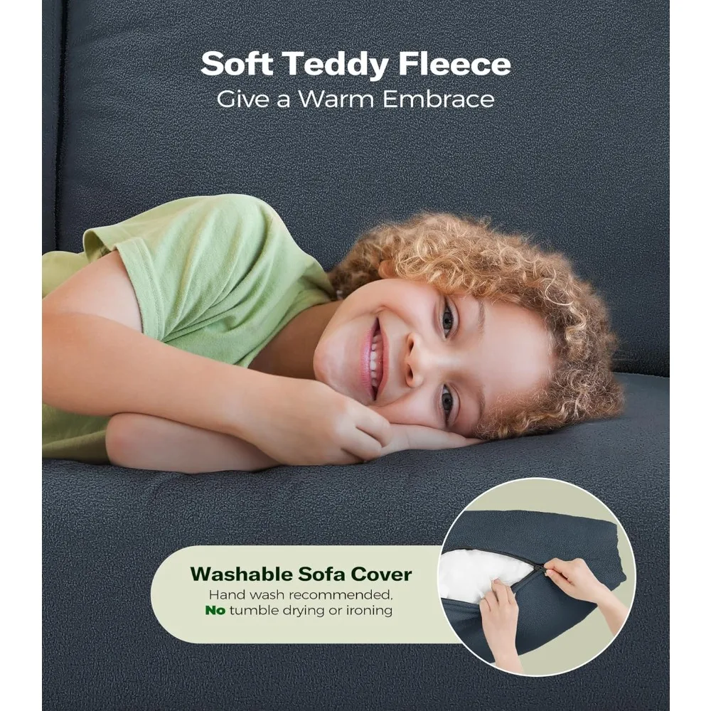 Perfect for small apartments, bedrooms, or cozy corners, this 51-inch Loveseat Sofa delivers comfort and style without taking up too much space. Upholstered in soft teddy fabric, it provides a plush, inviting seat for two, while its compact design makes it ideal for tight living areas. The sofa features a simple, tool-free assembly, allowing you to set it up quickly without the need for extra hardware. Sleek and modern, it pairs well with a variety of interior décor styles. Please note, this model does not include pillows, focusing on minimalistic comfort and practicality. Ideal for reading nooks, small living rooms, or lounge spaces, this loveseat combines functionality with a cozy aesthetic.