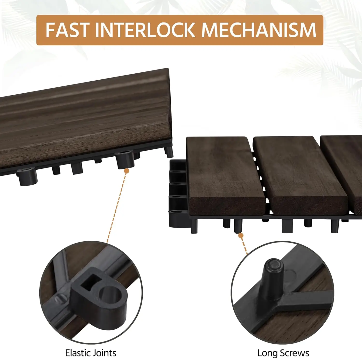 Upgrade your indoor and outdoor spaces with this 54-piece set of 12″x12″ acacia wood interlocking floor tiles. Crafted from durable, naturally beautiful acacia wood, each tile is treated for waterproof performance, weather resistance, and long-lasting durability. The interlocking design allows for quick, tool-free DIY installation over patios, balconies, gardens, poolside areas, or terraces, creating a smooth and uniform surface in minutes. With a warm, natural wood finish and low-maintenance construction, these modular tiles combine elegance and functionality, providing a stylish, practical, and long-lasting flooring solution for any home or outdoor environment.