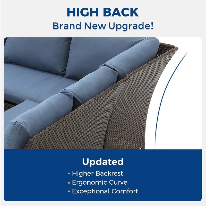 Built with all-weather materials, this set offers lasting durability and comfort through every season. The bold blue cushions add a stylish pop of color, creating a welcoming space for family and friends to enjoy the outdoors in comfort and style.
