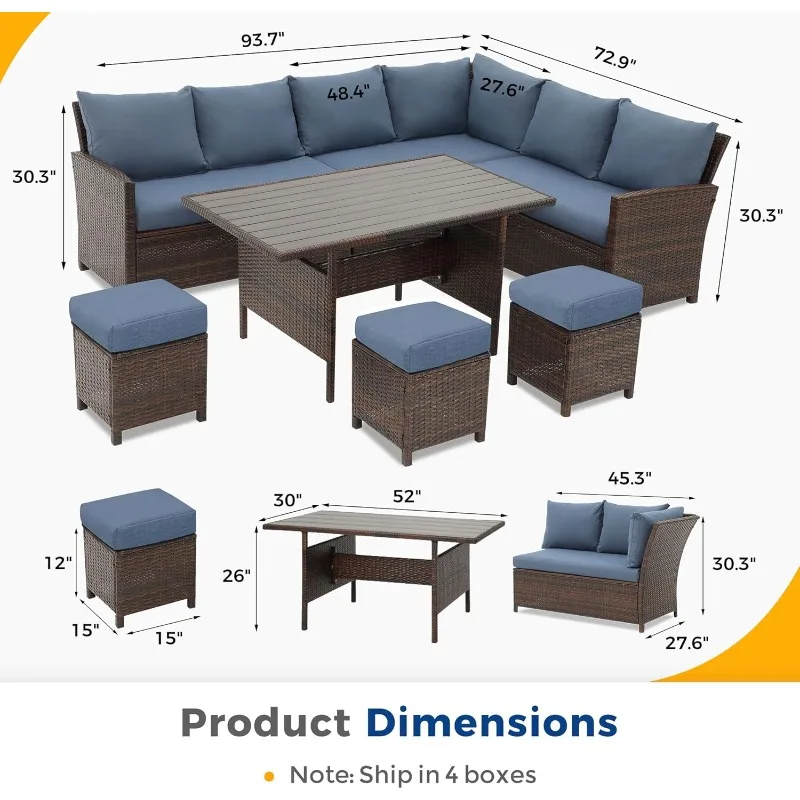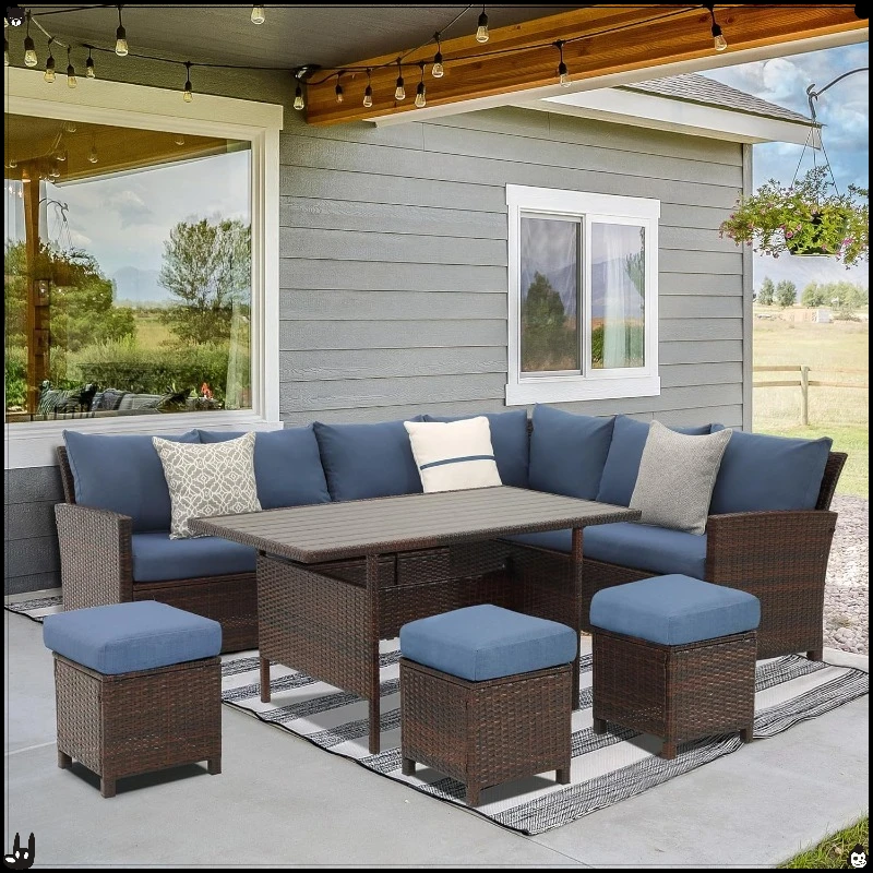 Transform your patio into a vibrant retreat with this 7-piece blue outdoor sectional sofa set. Designed for both relaxation and entertaining, it features spacious seating and a coordinating table, ideal for outdoor dining or casual gatherings.