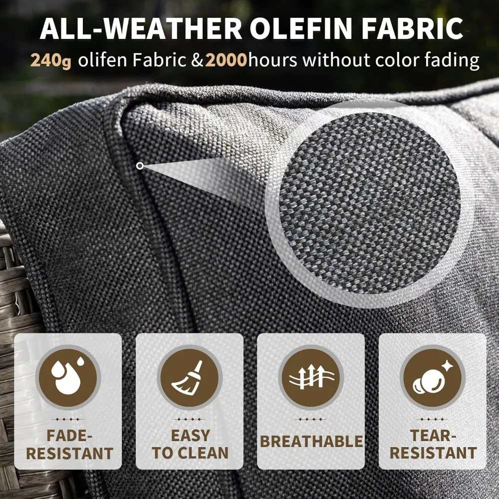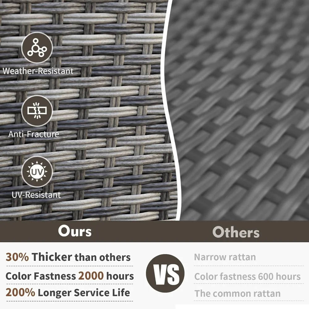 Create a cozy and elegant outdoor retreat with this 7-piece PE wicker patio furniture set. It includes two swivel rocker chairs with wood armrests, two matching ottomans, and a spacious three-seat sofa — perfect for lounging and entertaining.