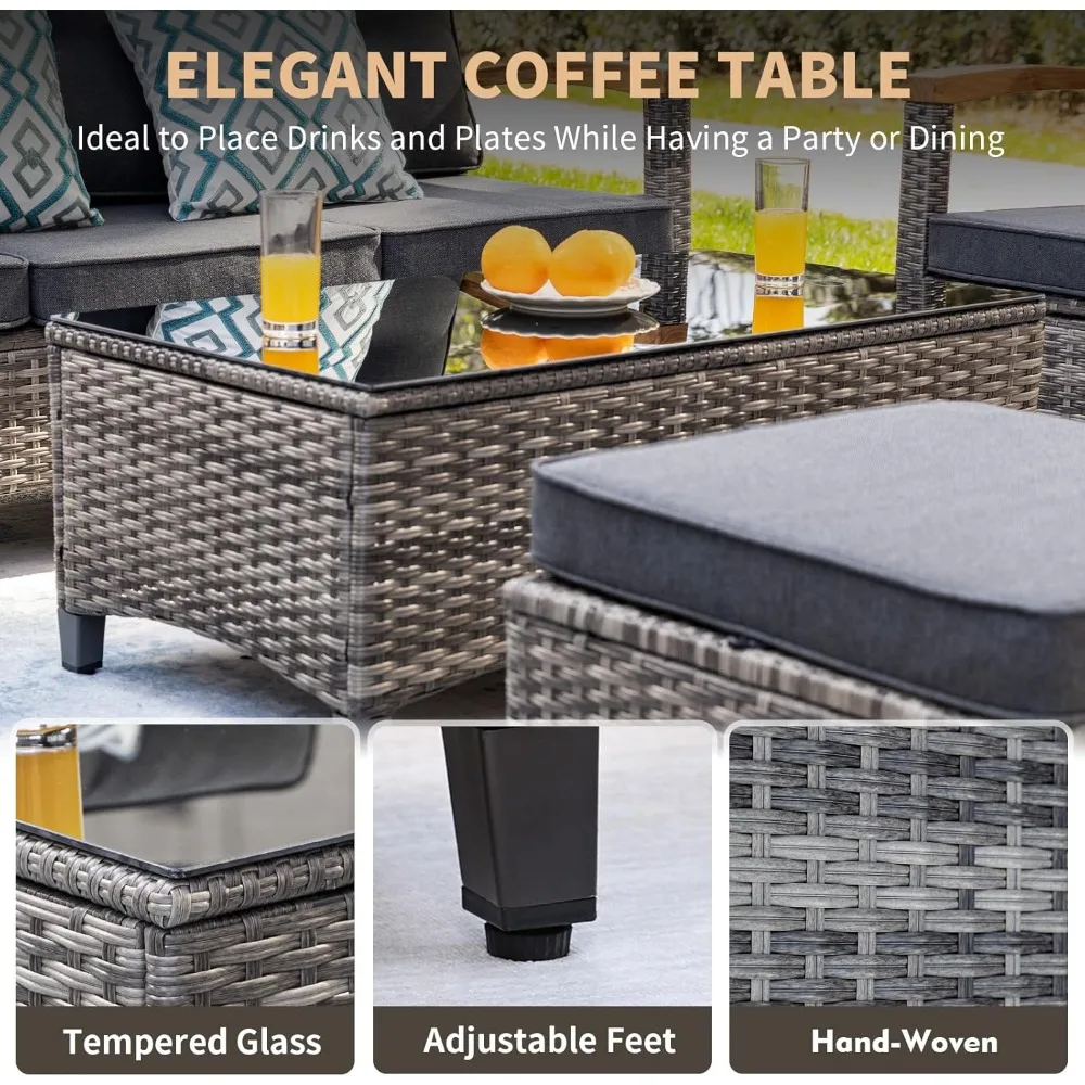 Crafted from durable, weather-resistant wicker, this set offers both comfort and long-lasting performance. The combination of warm wood accents and stylish design makes it an inviting centerpiece for any patio, deck, or garden seating area.
