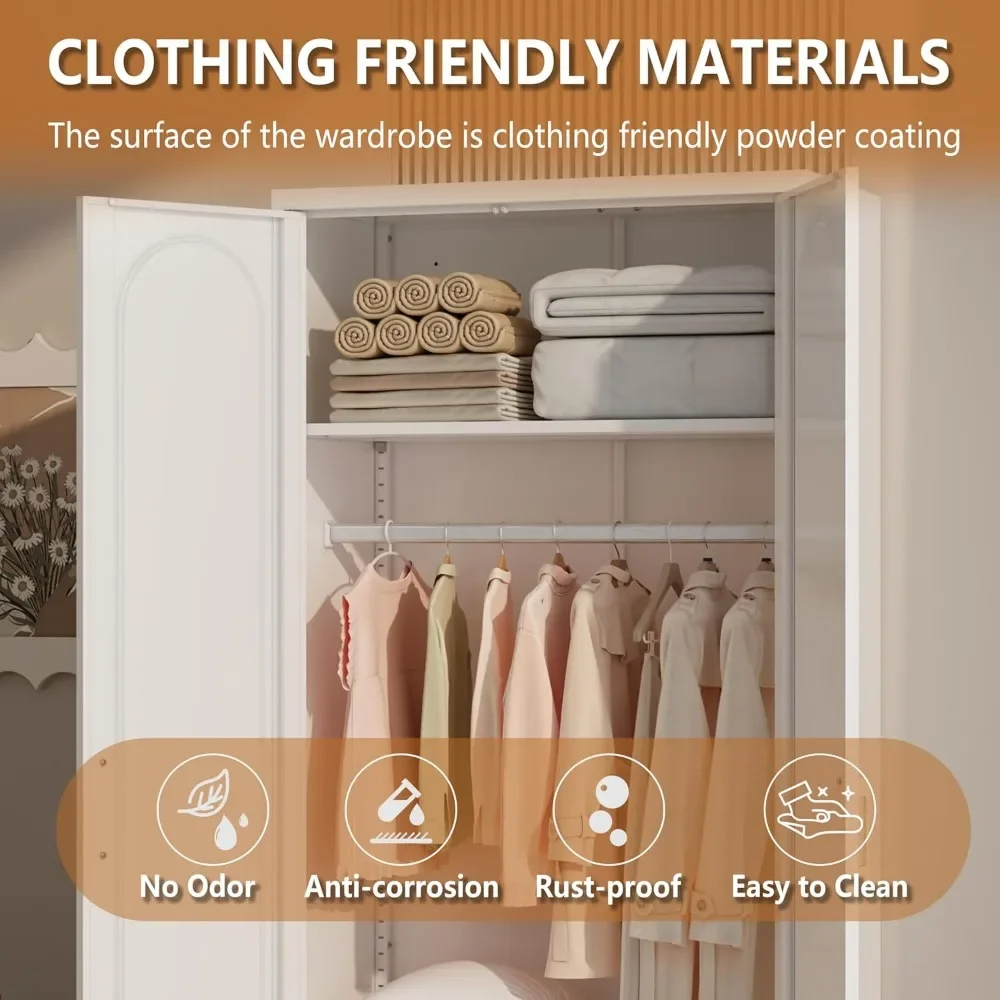 Bring effortless organization and serene order to your bedroom with this 71-inch Metal Armoire Wardrobe Closet. Featuring a sturdy hanging rod and spacious interior, it keeps clothing neatly arranged and easily accessible, reducing clutter and creating a calming environment. Its freestanding design combines practicality with sleek, minimalist style, supporting a bedroom atmosphere that feels open, balanced, and restorative. Perfect for daily routines or quiet evenings, this wardrobe transforms storage into a source of comfort and rejuvenation.