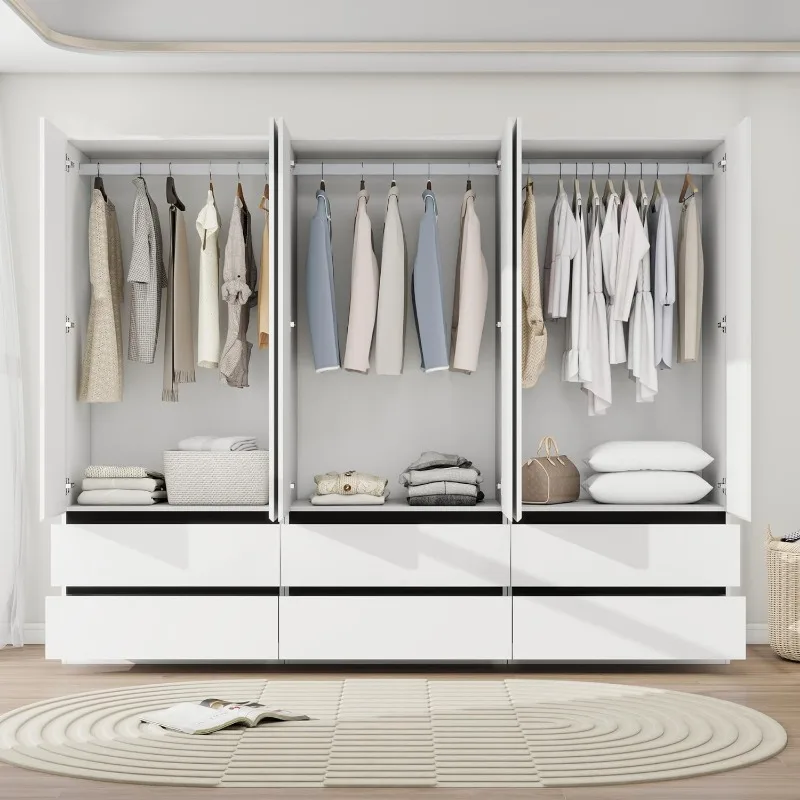 Bring a sense of order and tranquility to your bedroom with this 75-inch White Wooden Wardrobe, thoughtfully designed with six doors and six drawers for versatile storage. Its spacious compartments keep clothing, accessories, and everyday essentials neatly arranged, creating a serene, clutter-free environment that encourages relaxation and restorative energy. The crisp white finish adds a fresh, calming aesthetic, making your bedroom feel light, airy, and inviting. Perfect for starting your day with ease or winding down in peaceful order, this wardrobe transforms storage into a harmonious and rejuvenating part of your home.