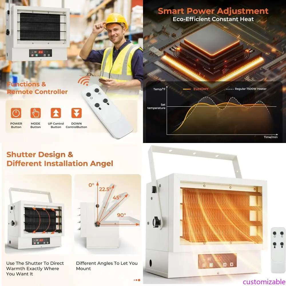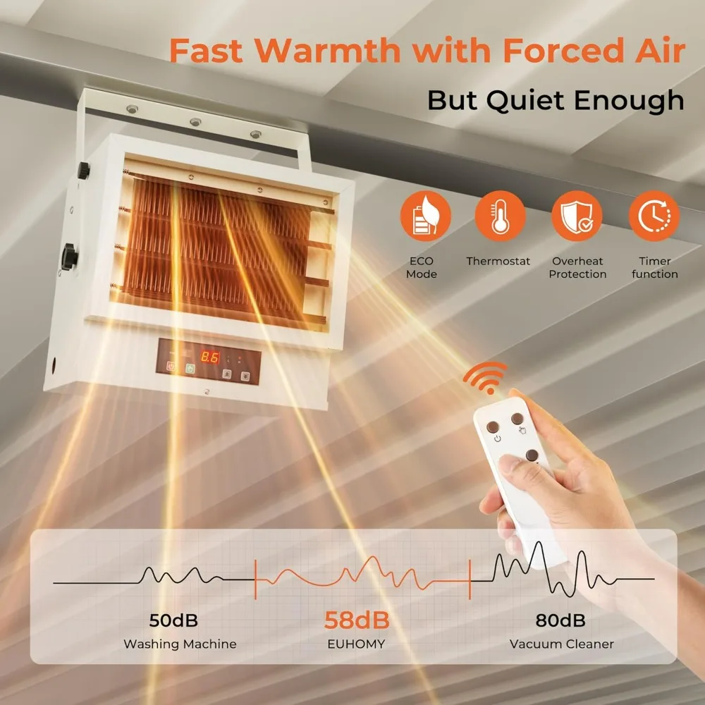Featuring a convenient remote control and a 9-hour timer, this ETL-certified heater offers both performance and safety. Its durable construction and space-saving ceiling mount make it the perfect heating solution for demanding work environments.