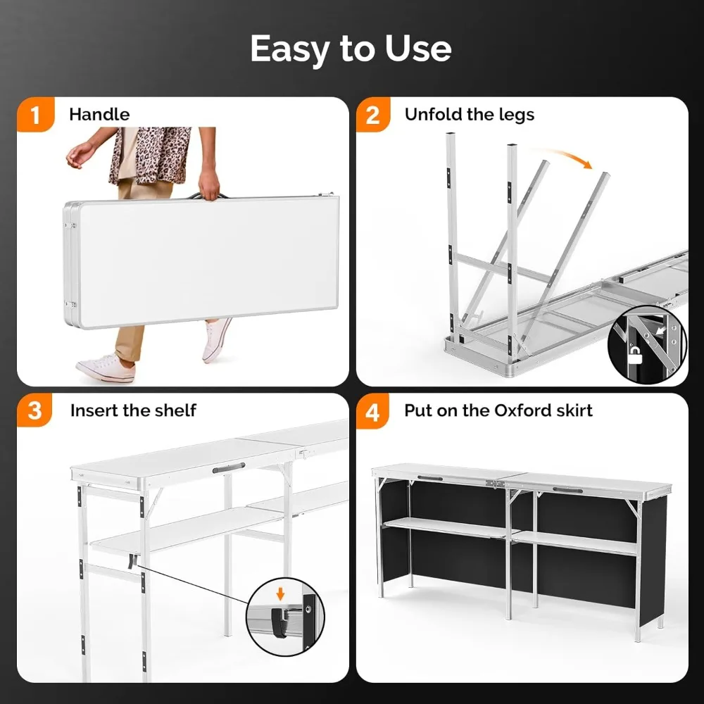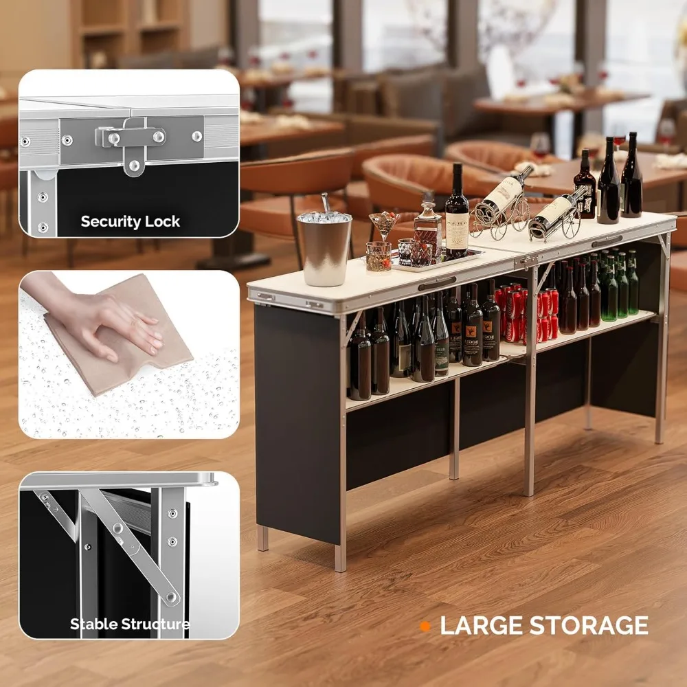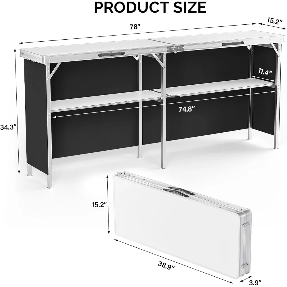 Bring effortless organization and refined calm to any gathering with this 78″ Portable Two-Tier Bar Table. Designed for both elegance and functionality, its spacious two-tier design creates a balanced space for serving drinks, displaying refreshments, or organizing essentials at events, parties, camping trips, or tradeshows. The sleek black skirt adds a subtle touch of sophistication, gently grounding your setup while maintaining a clean, harmonious aesthetic. Lightweight and mobile, this table allows for smooth transitions between spaces, encouraging a stress-free and restorative hosting experience. Whether set up indoors or outdoors, it transforms busy moments into orderly, serene encounters, letting guests and hosts alike relax into the flow of the event. Thoughtfully crafted to combine practical utility with understated elegance, it brings both ease and a sense of tranquility to every gathering.