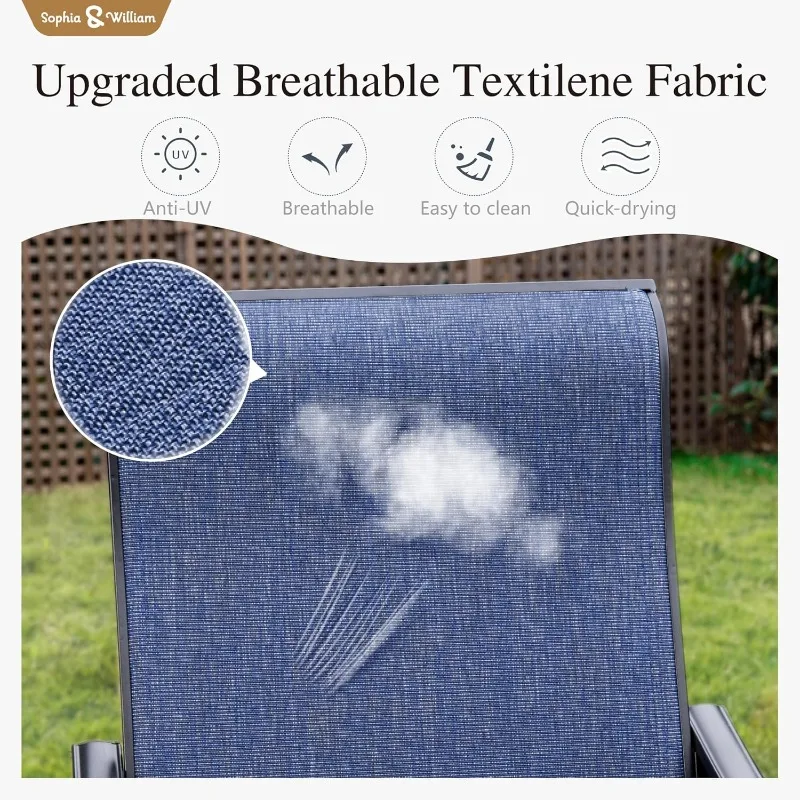 Built with durable, weather-resistant materials, this set offers long-lasting performance and easy maintenance. The plush blue cushions add a pop of color and comfort, while the swivel chairs provide relaxed, flexible seating for any outdoor occasion.