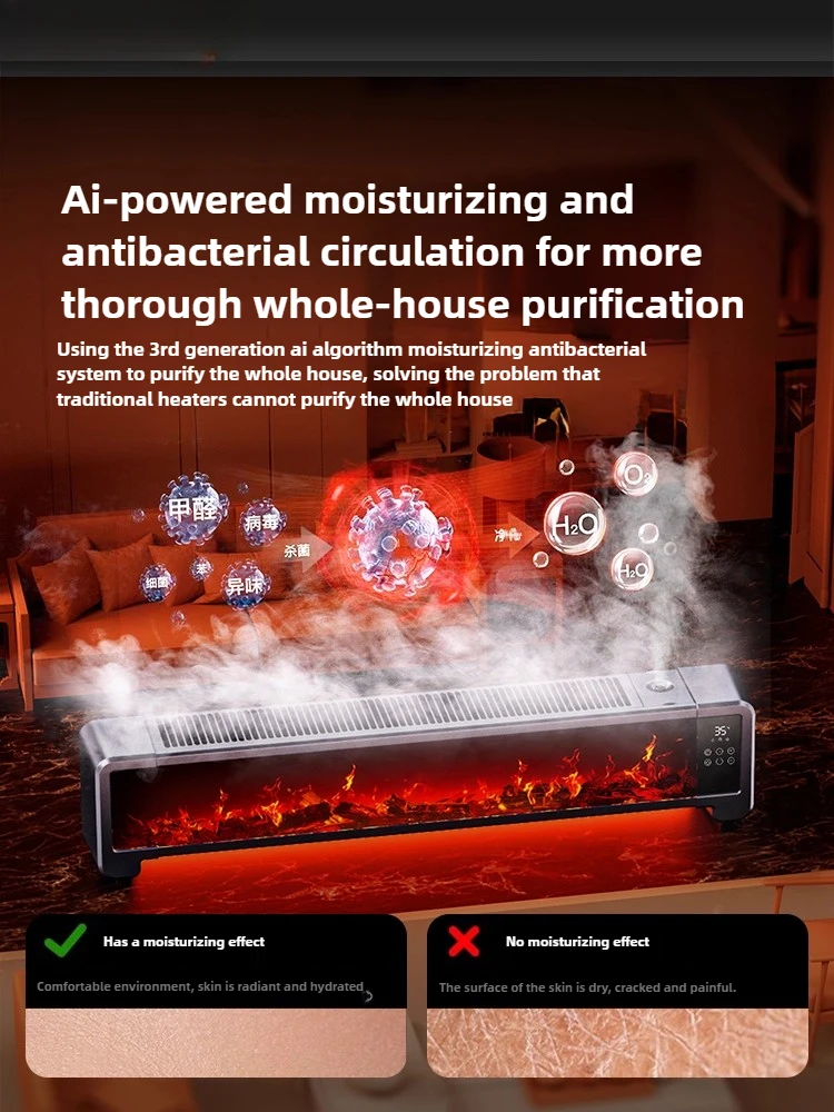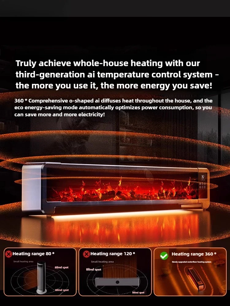 Stay warm and efficient this winter with the 2025 AI-powered skirting heater, designed for whole-house coverage and large-area heating. This advanced electric heating fan features intelligent temperature control, optimizing energy use while maintaining consistent warmth. Its sleek skirting design blends seamlessly into any room, making it ideal for living spaces, bedrooms, and offices. Engineered for quiet operation and rapid heat distribution, it’s the perfect solution for modern households seeking comfort and savings. Whether you’re battling cold snaps or looking for a smarter way to heat your home, this heater delivers powerful performance with futuristic efficiency.