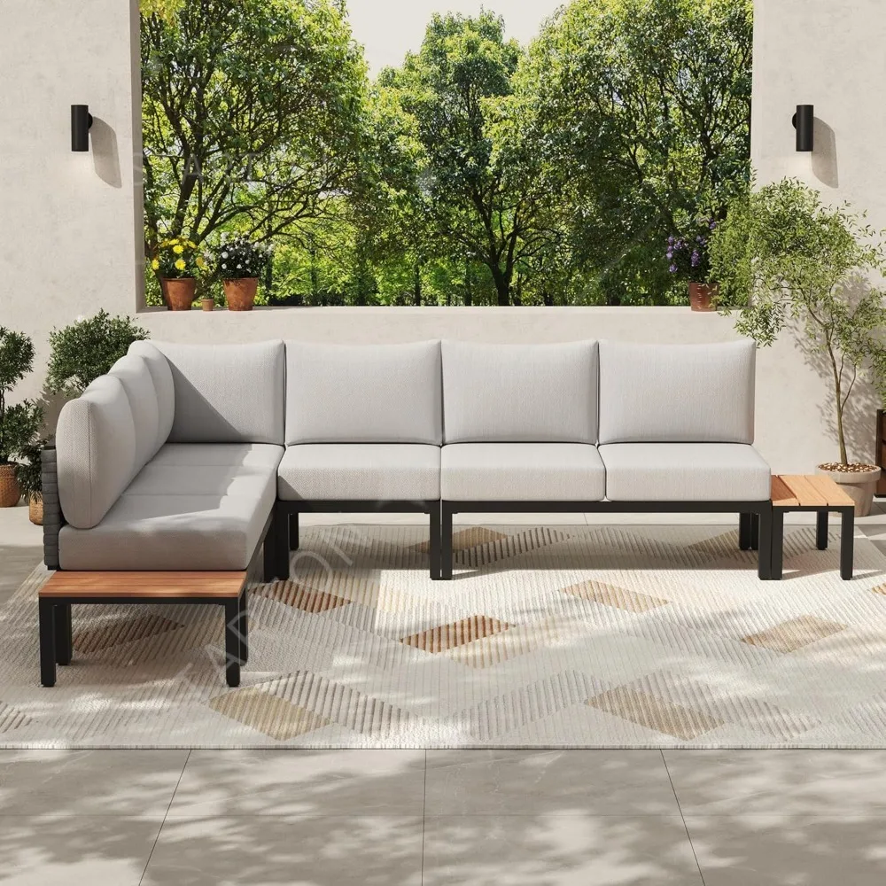Elevate your outdoor living space with this all-weather metal patio furniture set, featuring a sleek sectional sofa design perfect for gardens, porches, and patios. Built with a sturdy metal frame and weather-resistant materials, this set offers lasting durability and comfort in any season. The modular layout allows flexible seating arrangements, ideal for entertaining or relaxing outdoors. Whether you’re hosting guests or enjoying a quiet evening, this stylish and functional sectional couch adds a modern touch to your exterior décor.