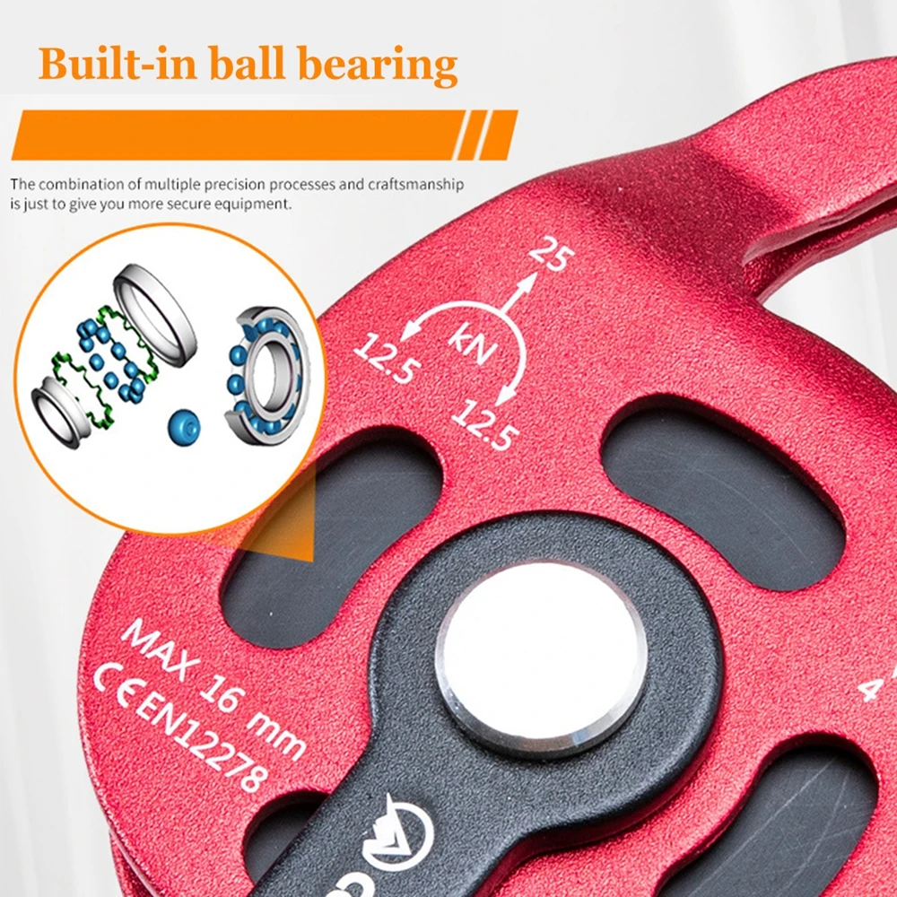 This climbing pulley is a durable and efficient lifting device designed for rescue missions, rock climbing, and heavy load transport at high altitudes. Built for smooth rope operation, it reduces friction and effort, allowing users to lift or move weight with greater control and less strain. Ideal for professional climbers, rescue teams, and outdoor survival enthusiasts, this pulley provides reliable performance in demanding environments. Whether you’re hauling gear, executing a technical ascent, or performing emergency extractions, its strong construction and effortless rotation ensure both safety and precision. Compact, lightweight, and easy to attach, it’s an essential tool for any high-risk climbing or rescue scenario.