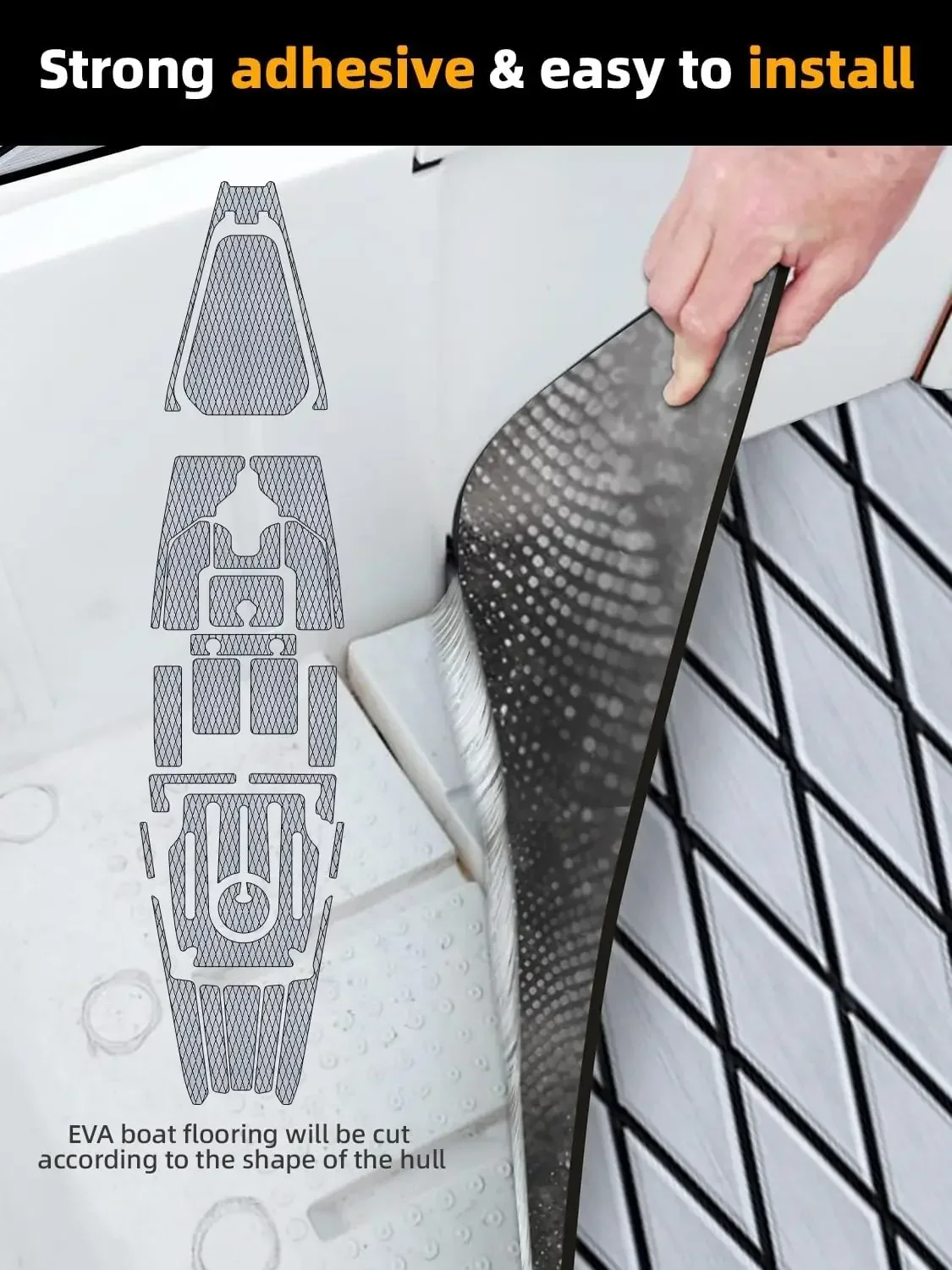 Upgrade your boat, kayak, surfboard, or garden decking with this EVA foam marine mat. Featuring a non-slip surface, it provides superior traction and safety even in wet conditions. The self-adhesive backing allows for quick, tool-free installation on any clean, dry surface, ensuring a secure and customizable fit. Durable, water-resistant, and easy to maintain, this mat withstands exposure to sun, water, and heavy use. Ideal for motorboats, kayaks, patios, or outdoor surfaces, it combines comfort, functionality, and aesthetics, creating a safe and visually appealing flooring solution for marine or outdoor environments.