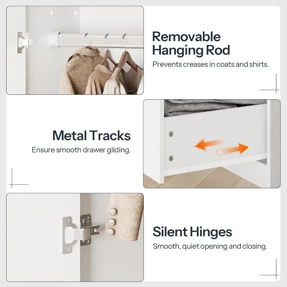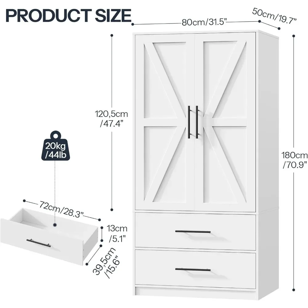 Set the tone for peaceful, effortless living with this Farmhouse Armoire Wardrobe Closet, thoughtfully crafted to offer both warmth and calming organization. Featuring spacious drawers, classic paneled doors, and a sturdy hanging rod, it provides a harmonious way to store clothing while reducing visual clutter and creating a grounded, inviting bedroom atmosphere. The wood finish adds a comforting rustic touch that softens your space and supports a slower, more restorative daily rhythm. Whether you’re preparing for the day or settling into a quiet evening, this wardrobe helps your room feel orderly, cozy, and indulgently serene—a welcoming retreat where relaxation and natural style coexist beautifully.