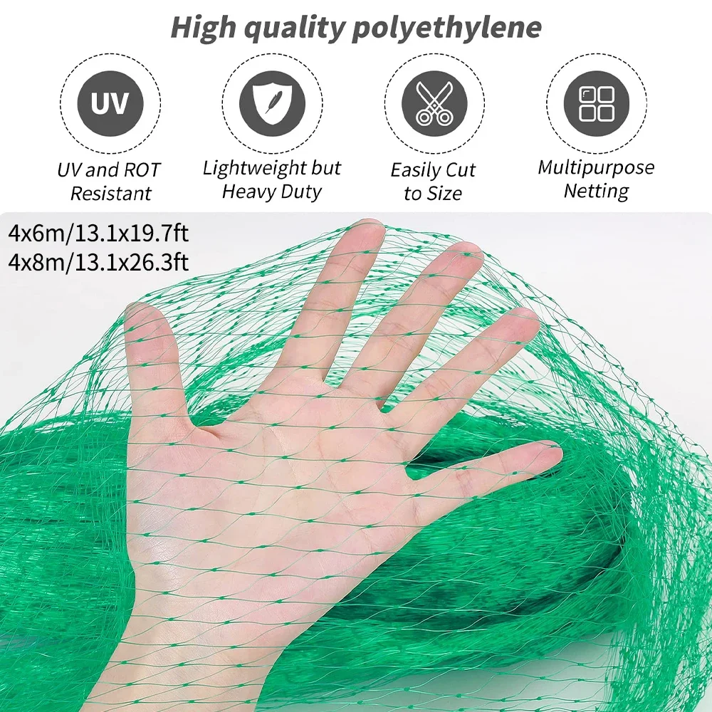 This green woven garden netting provides strong, durable protection for plants, fruits, flowers, and trees against birds, deer, and other animals. Made from flexible yet tear-resistant mesh, it stretches easily over garden beds, shrubs, and crops without harming plants. The breathable design allows sunlight, air, and water to pass through while creating a reliable barrier that keeps wildlife out. Ideal for home gardens, orchards, farms, and landscaping projects, the net can be used as fencing, draped over plants, or secured around growing areas. Lightweight, reusable, and weather-resistant, it offers long-lasting defense for your garden throughout every season. Perfect for anyone wanting to protect their harvest naturally and safely.