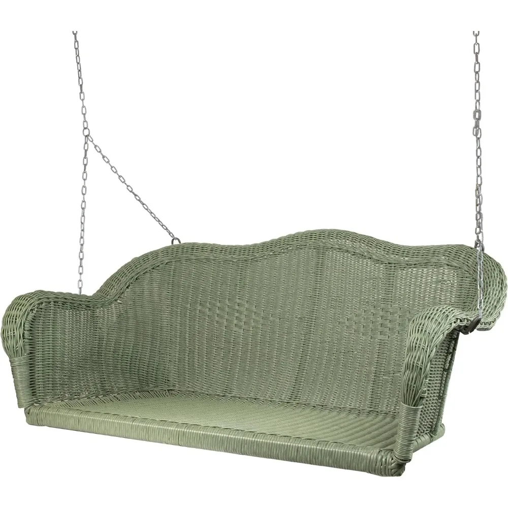 Enjoy classic porch comfort with this hand-woven resin wicker porch swing, designed in a refreshing green finish to bring charm and relaxation to any outdoor space. Crafted from durable, weather-resistant resin wicker over a reinforced steel frame, this swing is built to withstand sun, rain, and daily use without fading or fraying.