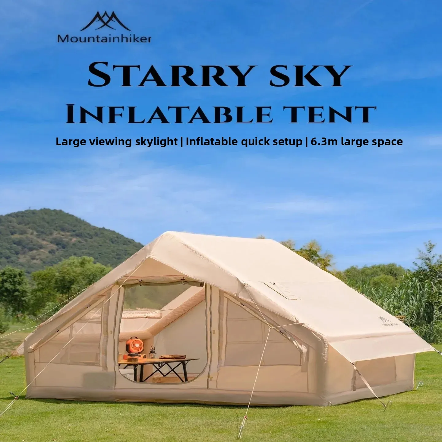 This inflatable family camping tent features a spacious cabin-style design with a unique viewing skylight, allowing you to enjoy natural light and starry night views while staying protected indoors. Constructed with durable Oxford cloth and an air-beam structure, it sets up quickly without traditional poles—just inflate and secure. The tent offers multiple rooms and generous headroom, making it ideal for family trips, picnics, or extended outdoor stays. Waterproof and wind-resistant, it provides reliable shelter in a variety of weather conditions while maintaining breathability and comfort. Easy to carry, install, and pack, this tent delivers a premium camping experience with added convenience, space, and style.