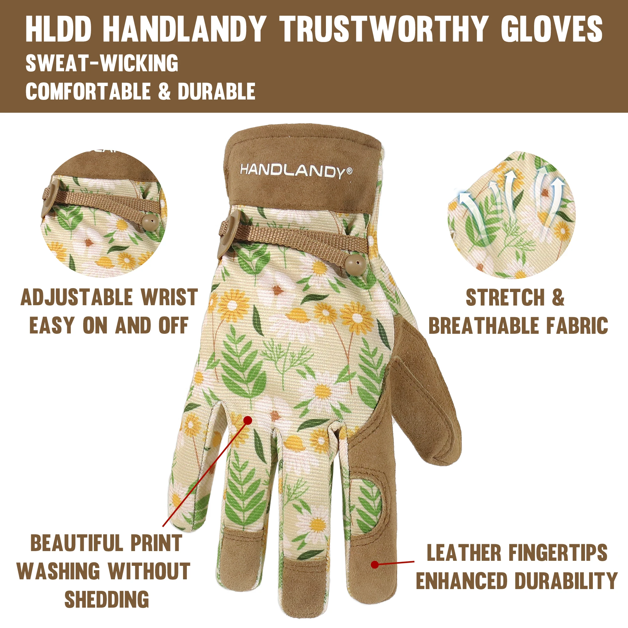 These HANDLANDY gardening gloves for women combine comfort, durability, and style, making them an ideal choice for both casual gardeners and outdoor enthusiasts. Crafted with soft yet protective leather palms, they offer excellent grip and thorn resistance while keeping hands safe from cuts, scratches, and rough surfaces. The breathable fabric on the back allows airflow to prevent sweating, ensuring all-day comfort during planting, pruning, or yard work. Designed to fit the natural shape of a woman’s hand, they provide flexibility without sacrificing strength. Practical, protective, and beautifully made, these gloves also make a thoughtful gift for any gardener who values both function and comfort.