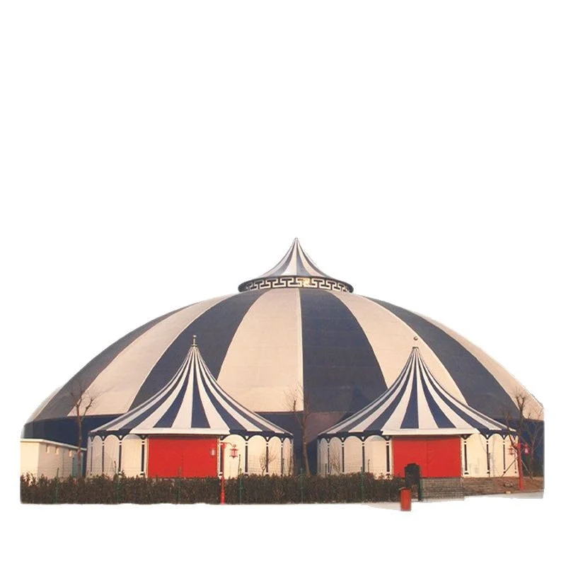 This large-scale tensioned membrane circus tent is designed for professional acrobatic troupes, large events, and commercial performances. Built with a durable PVDF tensile membrane structure, it offers exceptional strength, weather resistance, and long-term stability for year-round use. The design takes inspiration from traditional Mongolian yurts while incorporating modern engineering, creating a visually striking and highly functional event space. Ideal for circuses, festivals, exhibitions, live shows, and traveling performances, the tent provides wide open interior space with no obstructing poles, allowing maximum visibility and stage flexibility. Its modular construction supports customizable sizing, branding, seating layouts, and lighting installations. Whether used as a permanent structure or a relocatable venue, this membrane tent delivers high performance, fast installation, and a unique aesthetic that elevates any large-scale event.