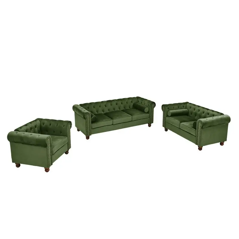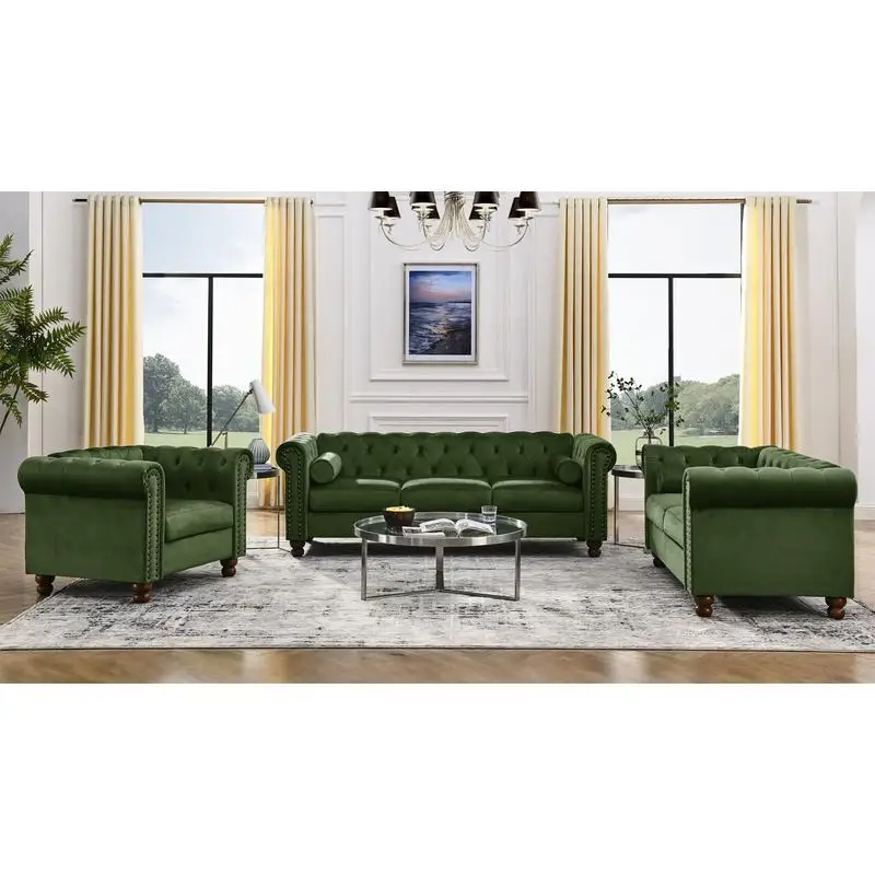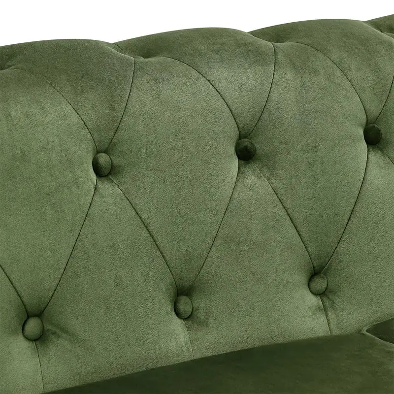 Elevate your living space with this Large Velvet Chesterfield Settee Sofa, a single-seater piece that combines classic design with modern comfort. Featuring deep tufted upholstery and a luxurious velvet finish, this sofa brings elegance and sophistication to any room. The rich green hue adds a vibrant yet refined touch, making it a statement piece for living rooms, studies, or reading nooks. Built with durable framing and plush cushioning, it ensures both support and comfort for daily use. Its timeless Chesterfield silhouette pairs beautifully with contemporary and traditional décor, while the compact one-seater size fits perfectly in smaller spaces without sacrificing style. Ideal for cozy seating, stylish lounging, or as an accent piece, this settee sofa blends functionality with high-end design, creating a welcoming and luxurious environment in your home.