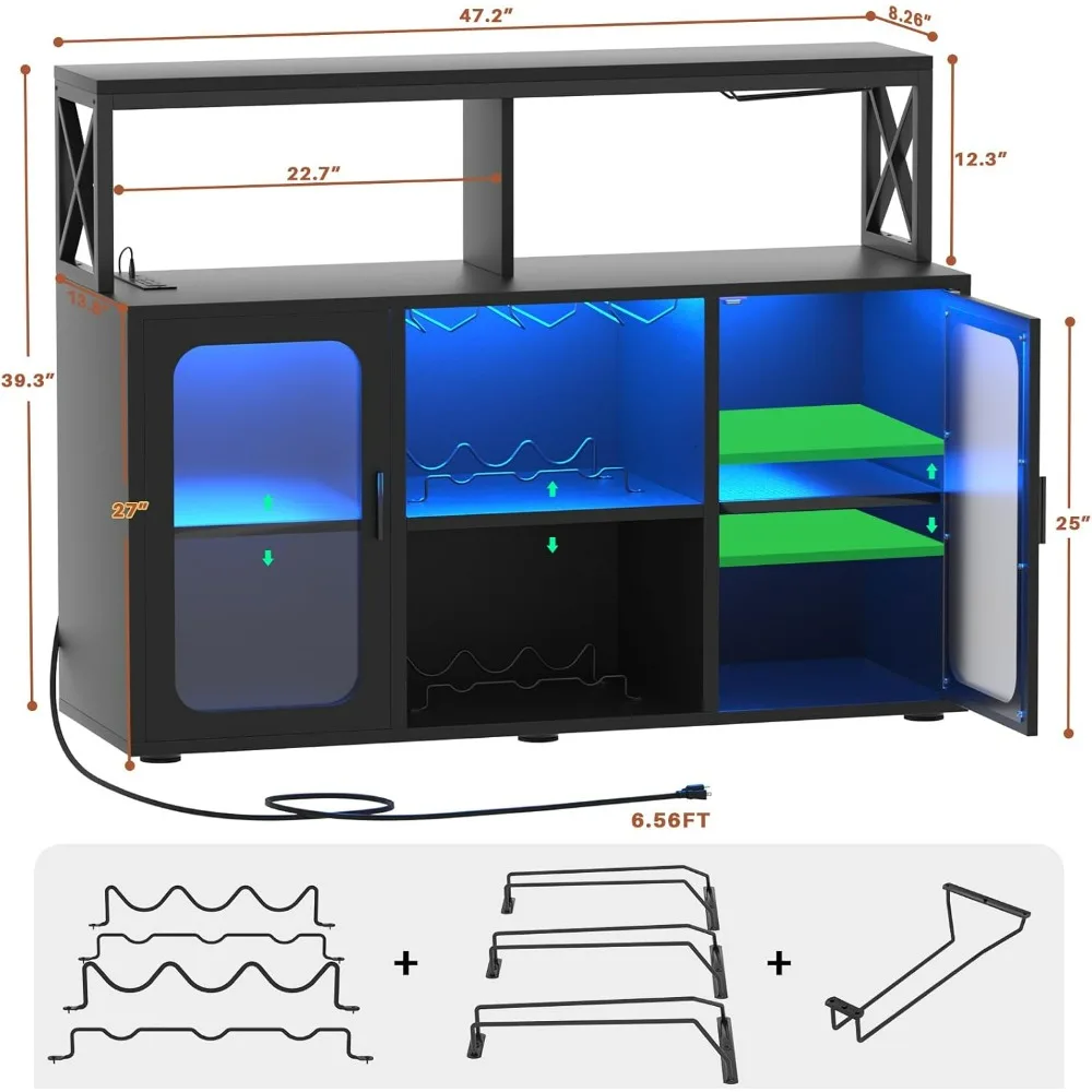Transform your home bar or coffee corner with this LED bar cabinet, thoughtfully designed to combine elegance, practicality, and ambient lighting. Equipped with built-in power outlets, a glass holder, and ample storage, it keeps liquor, barware, and coffee essentials organized and easily accessible. Perfect for kitchens, dining rooms, or living spaces, the integrated LED lights create a warm, inviting ambiance that enhances both casual gatherings and intimate evenings. Durable and visually appealing, this cabinet elevates everyday storage into a serene and stylish centerpiece, fostering connection, relaxation, and restorative enjoyment for every occasion.