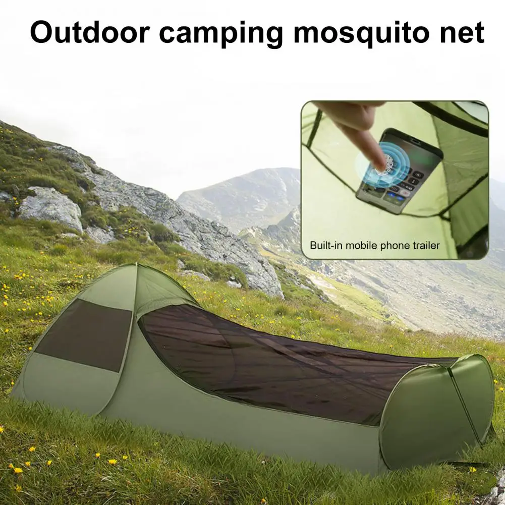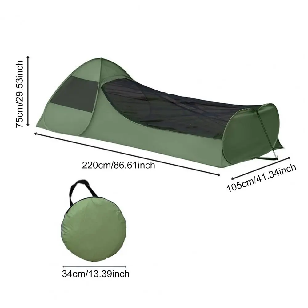 This lightweight portable pop-up camping tent offers a fast and convenient shelter for solo campers, hikers, and travelers. Designed for instant setup, it unfolds in seconds without the need for poles or complicated assembly. The breathable mesh netting provides ventilation while keeping insects out, ensuring a comfortable sleep environment outdoors. Compact and easy to carry, it’s ideal for backpacking, festivals, beach trips, or quick overnight adventures. A built-in phone holder adds convenience, allowing you to keep your device secure and accessible. Made with durable, weather-resistant materials, this single-person tent delivers reliable protection while staying lightweight and easy to pack—perfect for anyone who wants a simple, efficient shelter on the go.