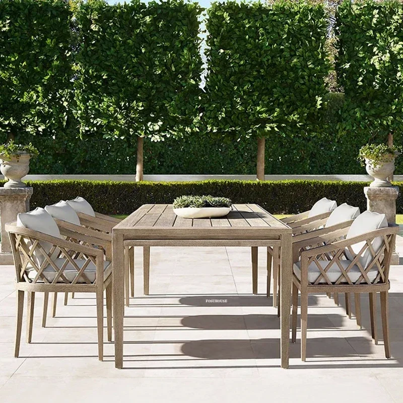 This luxury solid wood garden furniture set brings timeless elegance and comfort to any outdoor space, whether it’s a patio, villa terrace, or backyard dining area. Crafted from high-quality, weather-resistant wood, the set includes a sturdy table and matching chairs designed for long-term outdoor use. The natural grain and smooth finish add a refined touch, making it ideal for open-air meals, social gatherings, or relaxed leisure time. Built for durability and style, the furniture resists fading, warping, and outdoor wear, ensuring it stays beautiful season after season. Perfect for home patios, resorts, or upscale outdoor living spaces, this set offers both functionality and aesthetic appeal for those who appreciate premium craftsmanship and comfortable outdoor dining.