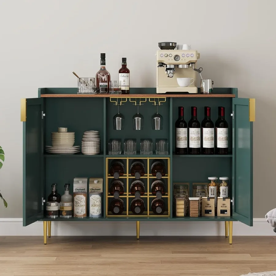 Elevate your kitchen or home bar with this 48” modern wine bar cabinet, thoughtfully designed to combine elegance, functionality, and aesthetic charm. Featuring a fluted texture, built-in wine rack, and integrated glass holder, it provides organized storage for bottles, glassware, and bar essentials while creating a visually striking centerpiece. Perfect for entertaining, casual gatherings, or quiet evenings, its sophisticated design harmonizes with contemporary décor, adding a serene and inviting ambiance to any space. Durable and stylish, this wine bar cabinet transforms ordinary storage into a refined and restorative focal point for both daily enjoyment and special occasions.