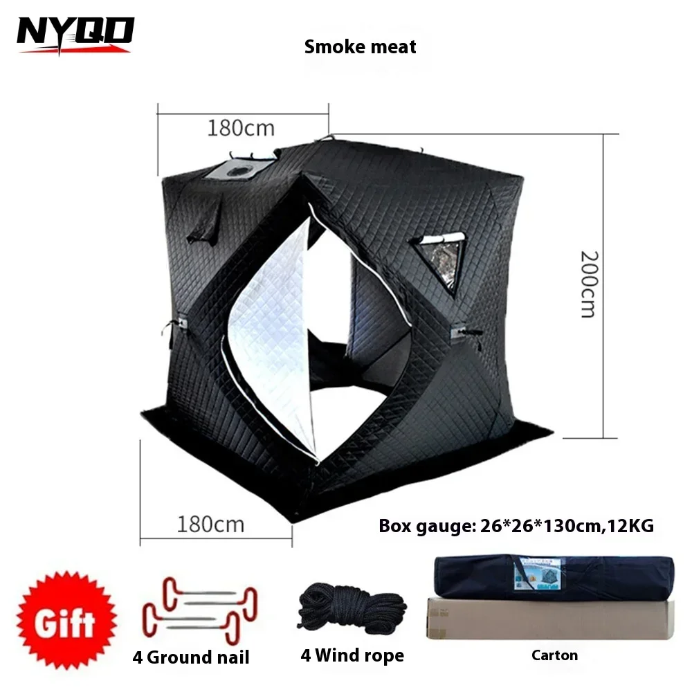 Enjoy year-round relaxation and warmth outdoors with this 4-season portable sauna tent designed for 3-4 people. Built with thickened, insulated fabric, it traps heat efficiently, making it ideal for winter camping, ice fishing, or outdoor spa use. The tent features an automatic pop-up design for quick setup, along with a chimney hole compatible with portable stoves to create a sauna-like environment or provide heat in cold conditions. Multiple windows allow adjustable ventilation and natural light, while the durable, weather-resistant construction ensures protection against wind, snow, and rain. Conveniently foldable and car portable, this versatile tent brings comfort and warmth anywhere—from lakeside trips to backyard retreats.