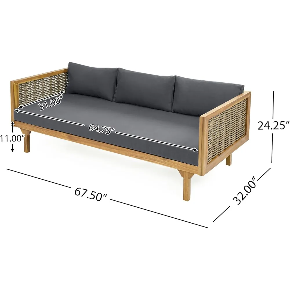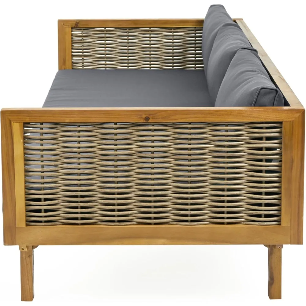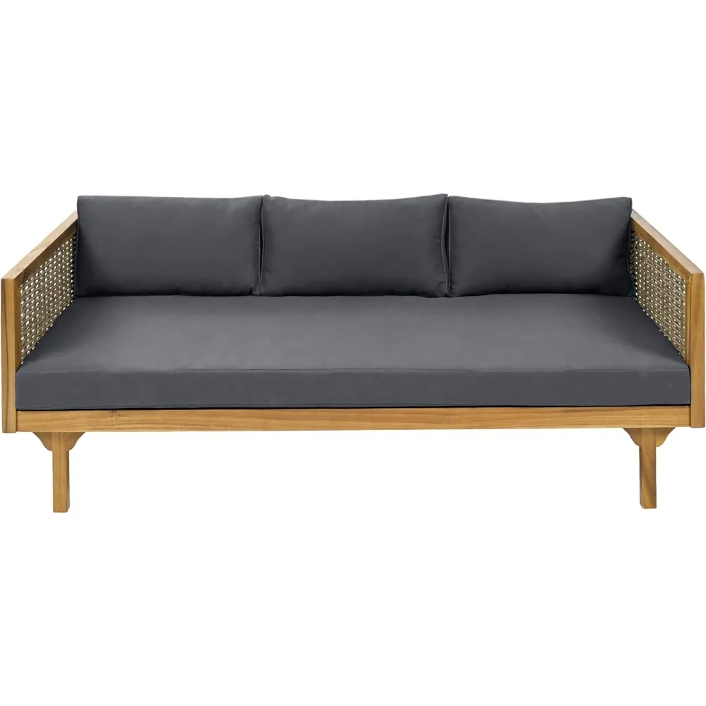 Transform your garden or patio into a sanctuary of comfort with this outdoor 3-seater daybed. Crafted with a solid acacia wood frame and accented by elegant rattan armrests, it blends natural beauty with lasting durability. The spacious design offers ample room for lounging, while the plush cushion and supportive pillows invite you to sink into serenity. Perfect for poolside retreats, backyard gatherings, or quiet afternoons under the open sky, this daybed creates a restorative space where relaxation and connection flourish. Weather-resistant materials ensure resilience through every season, while the timeless design complements any outdoor décor. More than furniture, it becomes a haven of renewal—an invitation to pause, breathe, and embrace the gentle rhythm of outdoor living. Stylish yet practical, this acacia wood daybed is not simply décor—it is a vessel of balance, a symbol of harmony, and a daily reminder that serenity can be cultivated in the comfort of your own outdoor space.