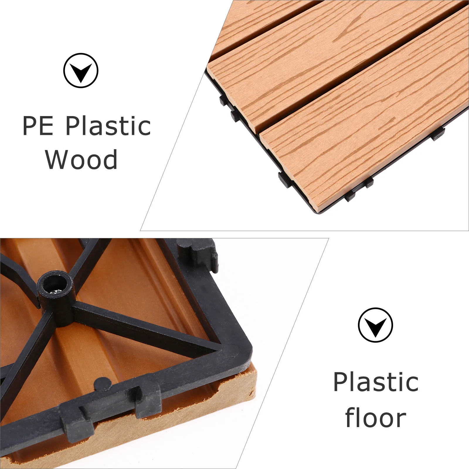 Enhance your garden, balcony, or yard with this durable wood-plastic splicing floor tile, designed for easy installation and long-lasting performance. Made from moisture, fire, and corrosion-resistant materials, it withstands harsh outdoor conditions while maintaining its natural wood appearance. The interlocking design allows for quick, tool-free assembly, creating a smooth and stylish surface in minutes. Perfect for patios, walkways, or decorative outdoor areas, this tile combines practicality and aesthetic appeal, providing a low-maintenance, weatherproof flooring solution that elevates any outdoor space.