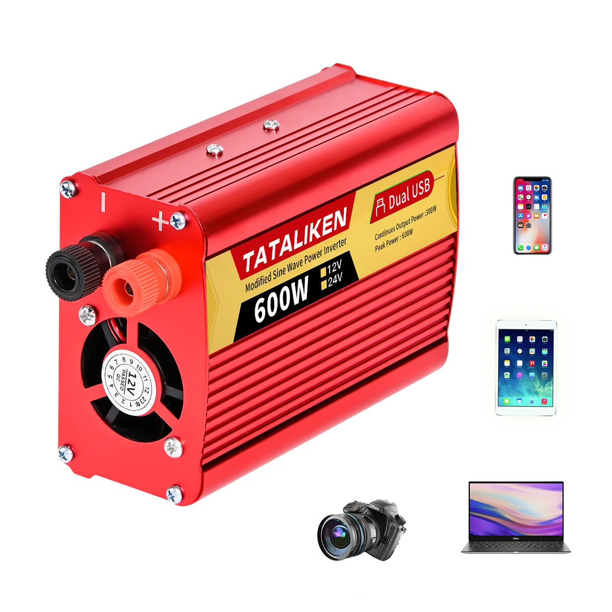 This portable 12V/24V power inverter converts DC power from a vehicle battery into stable 110V/220V AC output, making it ideal for cars, trucks, RVs, boats, and off-grid backup use. Available in multiple wattage options—600W, 1500W, 2000W, and 2500W—it powers a wide range of household and electronic devices, from laptops and small appliances to power tools and camping gear. Built with a universal socket and 60Hz output frequency, it supports most standard plugs and delivers reliable performance wherever you need power on the go. Designed with built-in safety features such as overload, overheat, and short-circuit protection, it ensures safe operation during travel or emergency use. Compact, efficient, and easy to install, this inverter is a practical accessory for road trips, outdoor work, and home backup power needs.