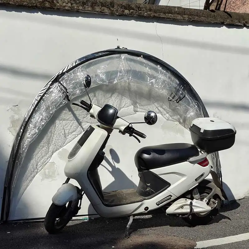 This portable motorcycle storage tent provides a secure and weatherproof shelter for scooters, e-bikes, and small motorcycles. Designed with a 5-position adjustable frame, it allows flexible height and fit for different vehicle sizes. The durable, waterproof cover protects against rain, dust, UV rays, and snow, helping extend the life of your bike. Its hangable, foldable design makes it easy to set up, store, or transport, offering a convenient alternative to bulky permanent garages. Ideal for backyards, parking lots, or travel use, this compact storage solution keeps your ride clean, dry, and protected year-round.
