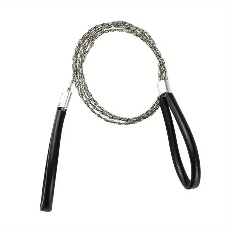 Be prepared for unexpected needs in the wilderness with this essential Portable Stainless Steel Wire Saw. Designed for emergency and survival situations, this compact saw is lightweight, flexible, and virtually unbreakable, making it easy to carry anywhere. The unique construction features a high-strength stainless steel wire with sharp teeth, capable of quickly cutting wood, plastic, bone, and even soft metal. Ergonomically designed finger handles provide a secure, comfortable grip, allowing for effective, fast cutting using a simple back-and-forth motion. It is an indispensable outdoor camping and hiking pocket manual cutting chain saw, perfect for gathering firewood or clearing small obstacles. This survive tool packs down into an extremely small space, easily fitting into a pocket, survival kit, or first aid pouch. Despite its miniature size, it offers powerful cutting capability, making it a crucial piece of gear for any serious adventurer.