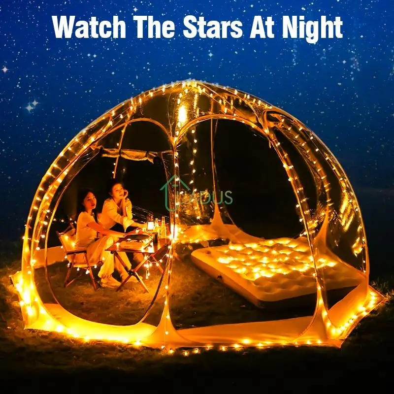 This portable folding transparent bubble tent creates a cozy, windproof space for outdoor relaxation, camping, or stargazing in any season. Its clear, panoramic design lets you enjoy nature views while staying protected from rain, snow, and cold winds. Made with durable, waterproof materials, the tent sets up easily and maintains its structure without complex assembly. Ideal for backyard lounging, winter sunbathing, glamping, or festive outdoor setups, it offers a unique way to enjoy the outdoors while staying warm and sheltered. Lightweight and transport-friendly, this bubble house is perfect for anyone who wants comfort without giving up the open-sky experience.