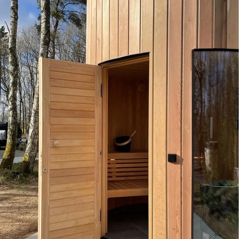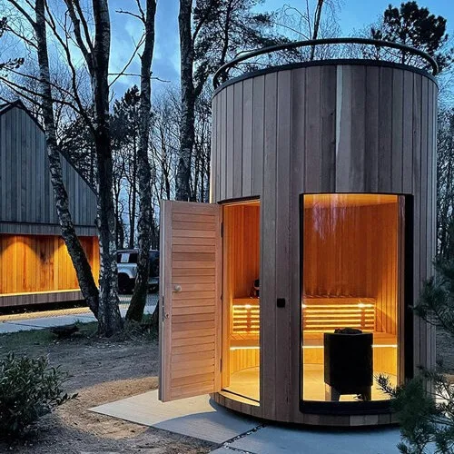 Typical Russian outdoor saunas range from 6×6 ft for 2 people to 8×12 ft for 4–6 people. Larger custom builds can exceed 100 sq ft depending on use and layout.